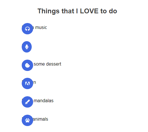 En el código de la pregunta, el css hace que cambie el estilo cuando se pasa el mouse por encima debido a.icon:hover. Las fuentes de iconos son fuentes (tipos de letra) en los que cada carácter es un icono que se han hecho populares en los últimos años. Debes buscar los códigos en la documentación del fontawesome. Covering popular subjects like html, css, javascript, python, sql, java, and many, many more... Debe utilizar el elemento de lista y mostrar en línea con la propiedad del centro de texto.